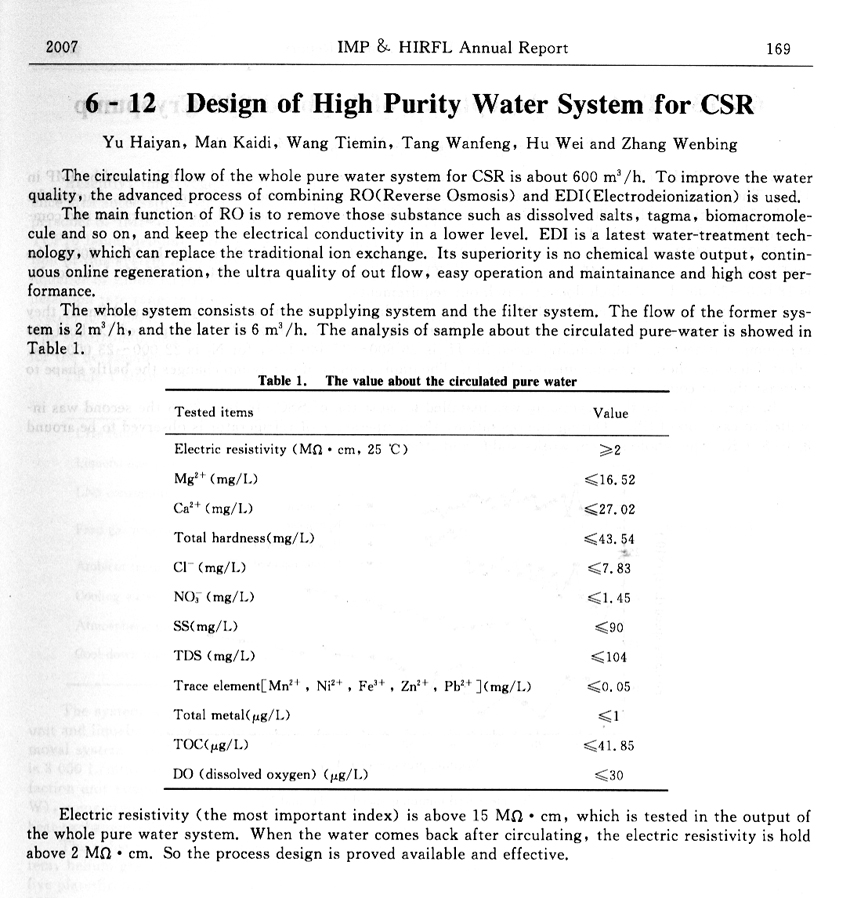 Design of High Purity Water System for CSR ... ... Yu Haiyan et al. (169)