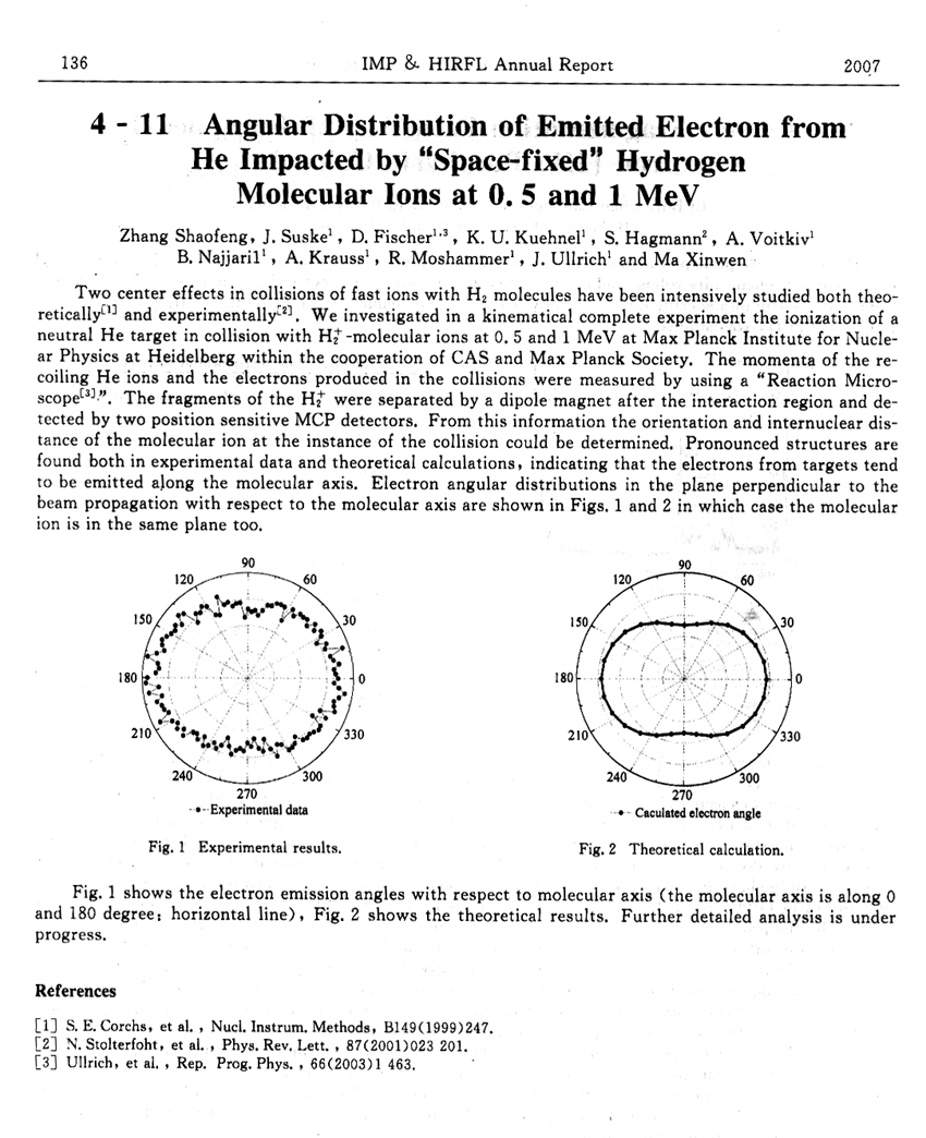 Angular Distribution of Emitted Electron form He Impacted by "Space-fixed" Hydrogen Molecular Ions at 0.5 and 1 MeV ... ... Zhang Shaofeng et al.(136)