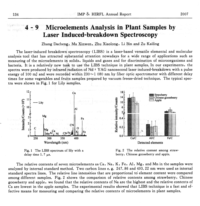 Microelements Analysis in Plant Samples by Laser Induced-breakdown Spectroscopy ... ...Zhang Dacheng et al.(134)