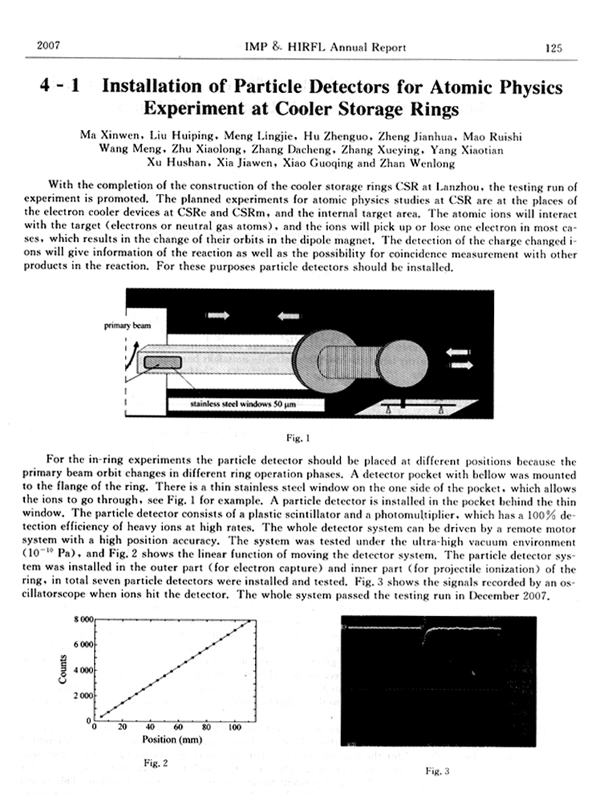 Installation of Particle Detectors for Atomic Physics Experiment at Cooler Storage Rings... ...Ma Xinwen et al.(125)