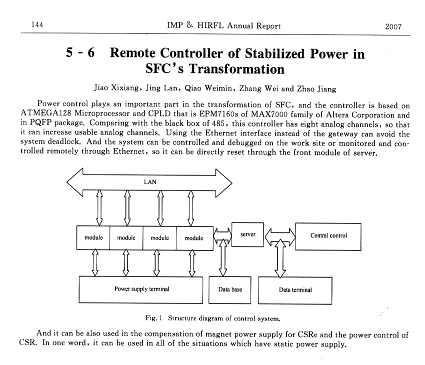 Remote Controller of Stabilized Power in SFC's Transformation ... ... Jiao Xixiang et al. (144)