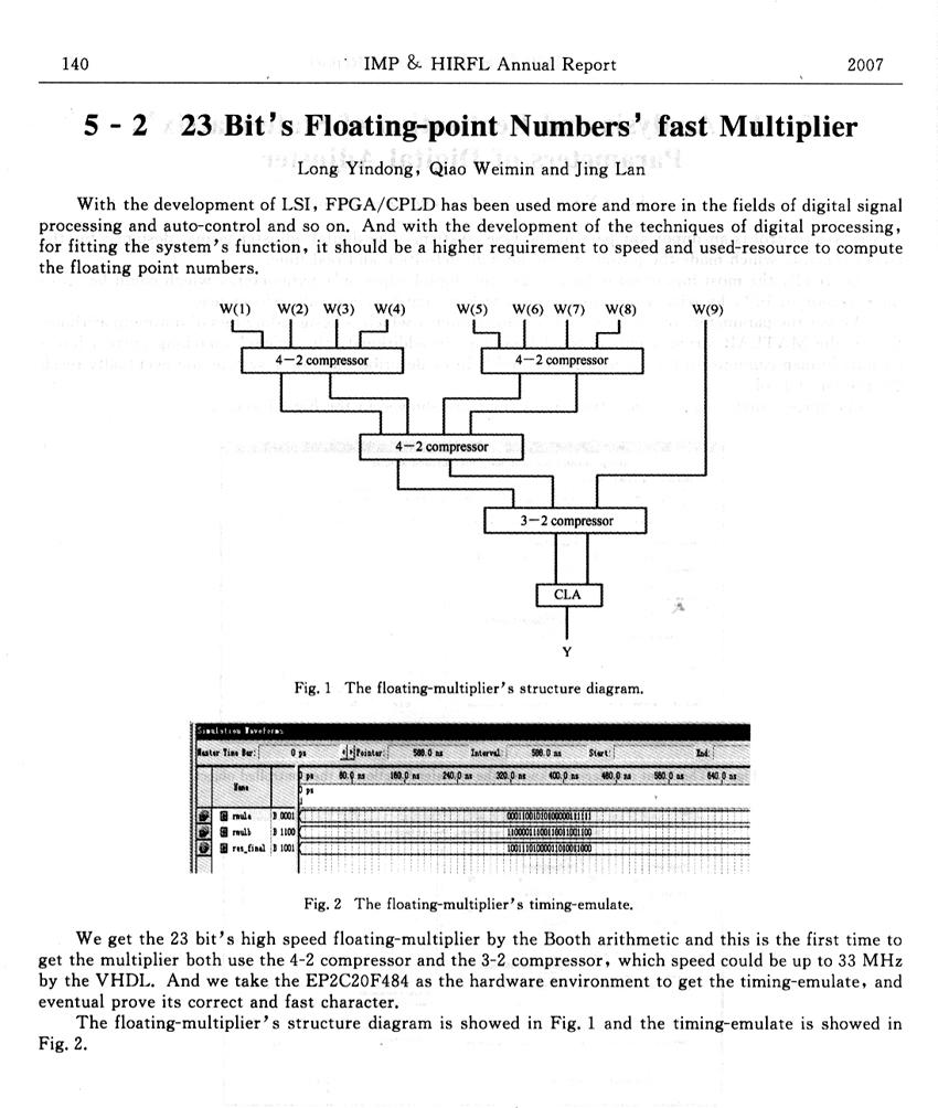 23 Bit's Floating-point Numbers' fast Multiplier .. ...Long Yindong et al. (140)