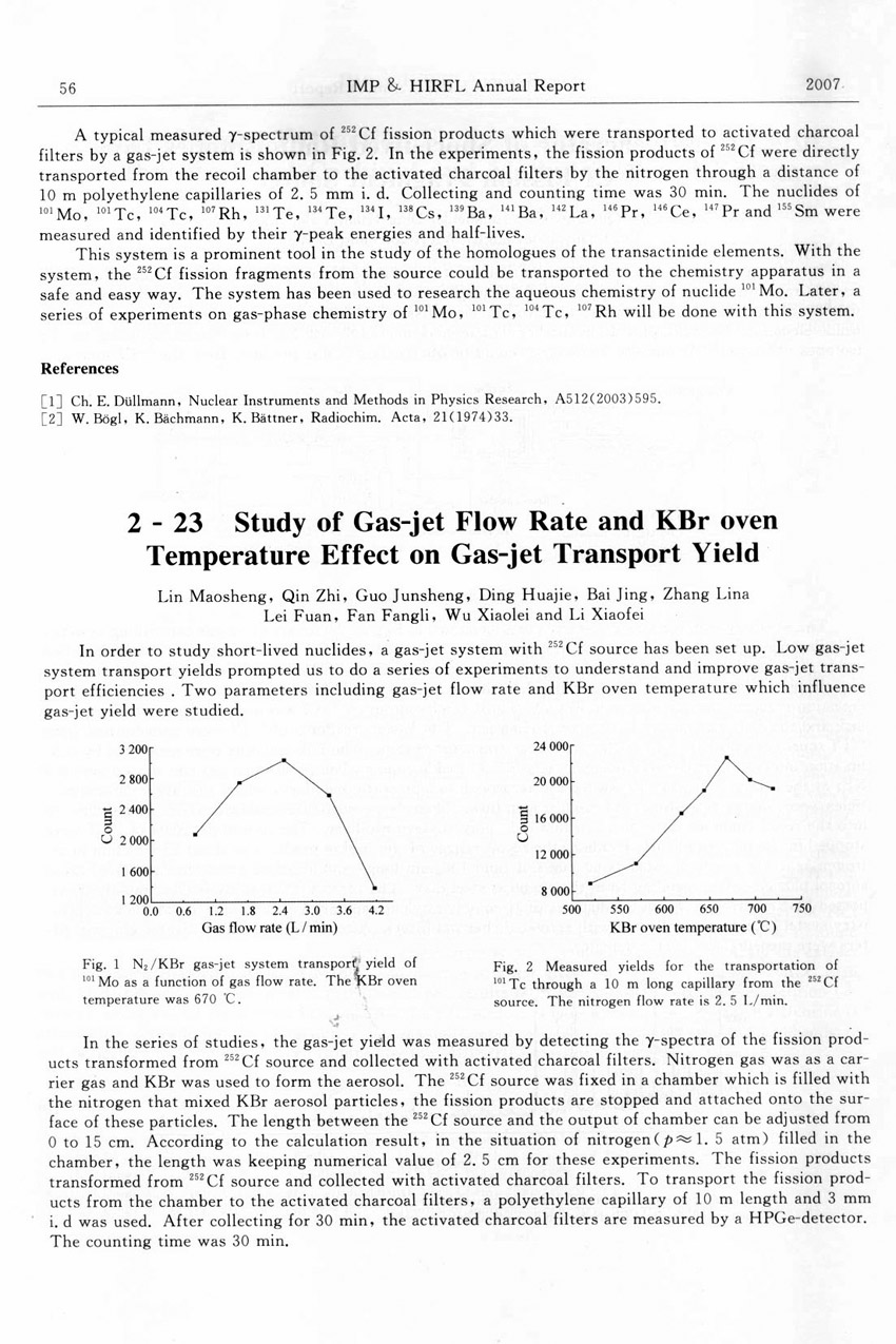 Study of Gas-jet Flow Rate and KBr oven Temperature Effect on Gas-jet Transport Yield ... ...Lin Maosheng et al.(56)