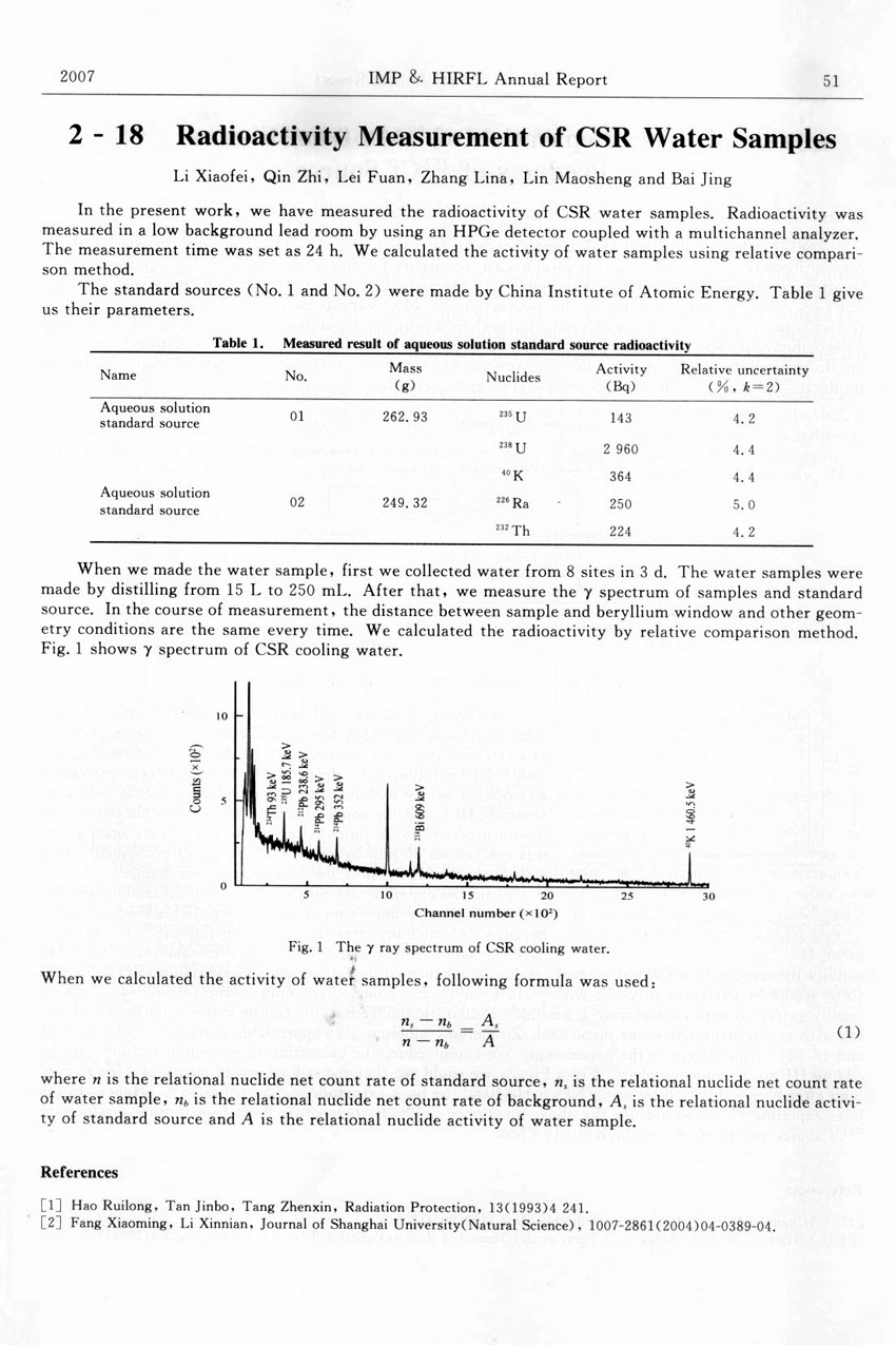 Radioactivity Measurement of CSR Water Samples ... ... Li Xiaofen et al.(51)