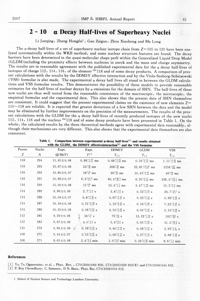 α Decay Half-lives of Superheavy Nuclei ... ... Li Junqing et al.(41)