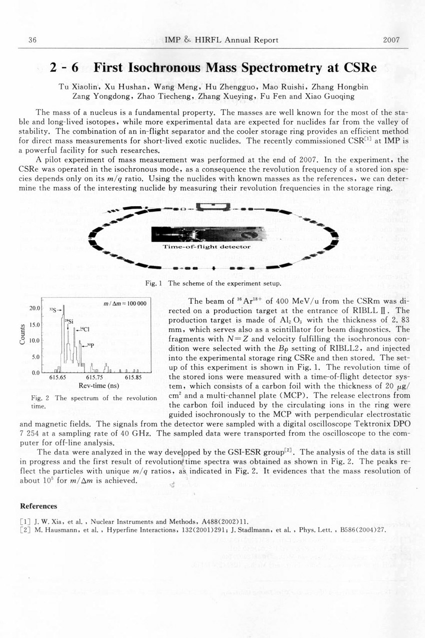 First Isochronous Mass Spectrometry at CSRe ......Tu Xiaolin et al.(36)