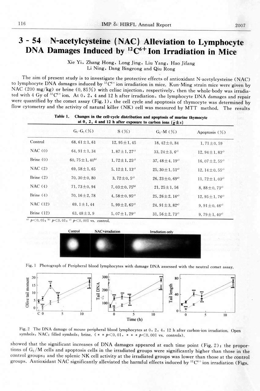N-acetylcysteine (NAC) Alleviation to Lymphocyte DNA Damages Induced by 12C6+ Ion Irradiation in Mice ... ... Xie Yi et al.(116)
