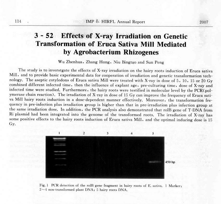 Effects of X-ray Irradiation on Genetic Transformation of Eruca Sativa Mill Mediated by Agrobacterium Rhizgenes ... ... Wu Zhenhua et al.(114)