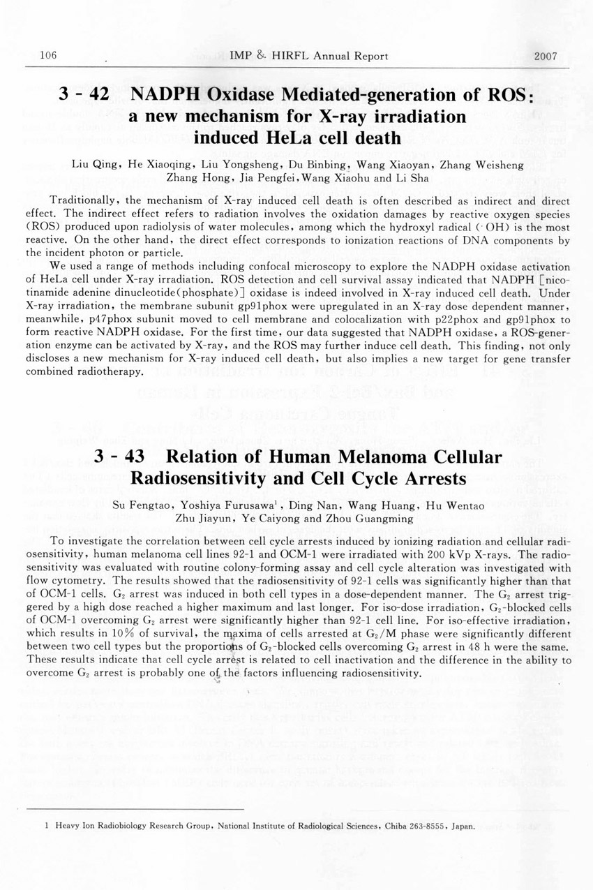 Relation of Human Melanoma Cellular Radiosensityvity and Cell Cycle Arrests ... ... Su Fengtao et al.(106)