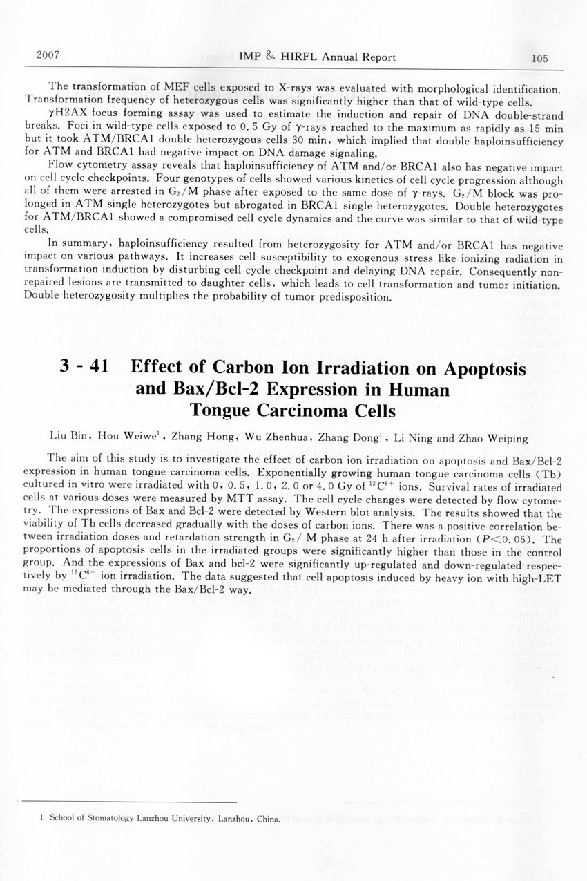 Contributes of Heterozygosity for ATM and/or BRCA1 to Individual Susceptibility to Tumor Initiation ... ... Zhou Guangming et al.(104)