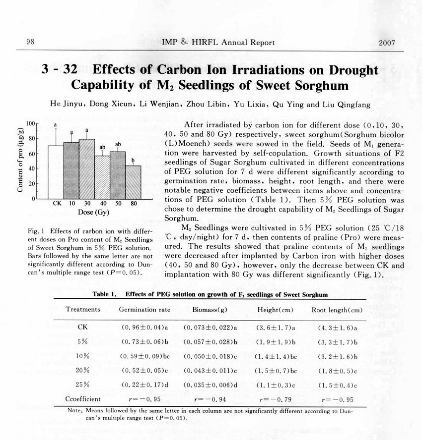 Effects of Carbon Ion Irradiations on Drought Capability of M2 Seedlings of Sweet Sorghum ... ... He Jinyu et al.(98)
