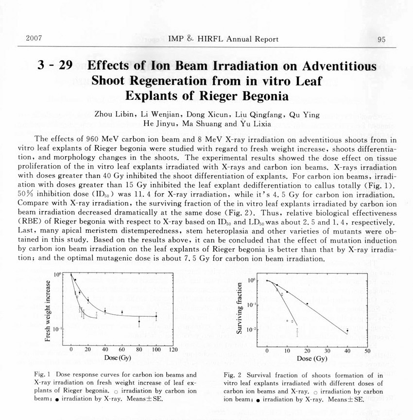 Effects of Ion Beam Irradiation on Adventitious Shoot Regeneration form in vitro Leaf Explants of Rieger Begonia... ... Zhou Libin et al.(95)