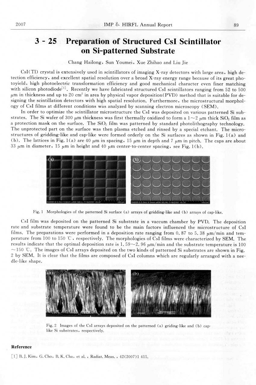 Preparation of Structured CsI Scintillator on Si-patterned Substrate ... ... Chang Hailong et al.(89)