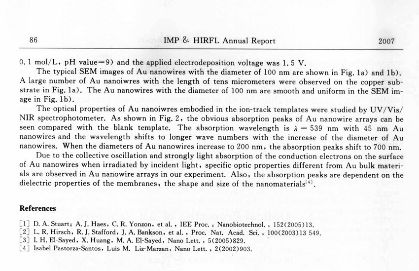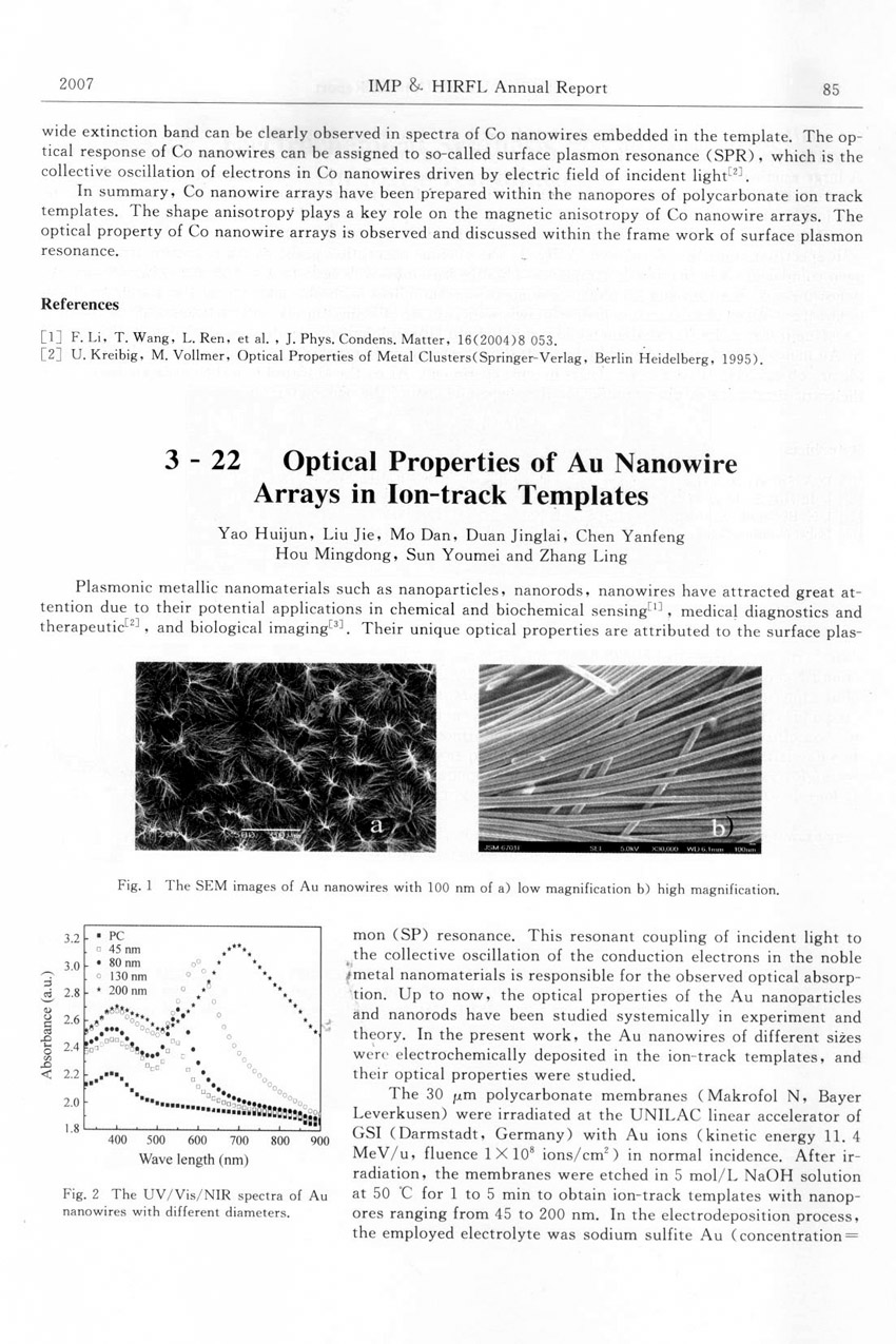 Optical Properties of Au Nanowire Arrays in Ion-track Templates ... ... Yao Huijun et al.(85)