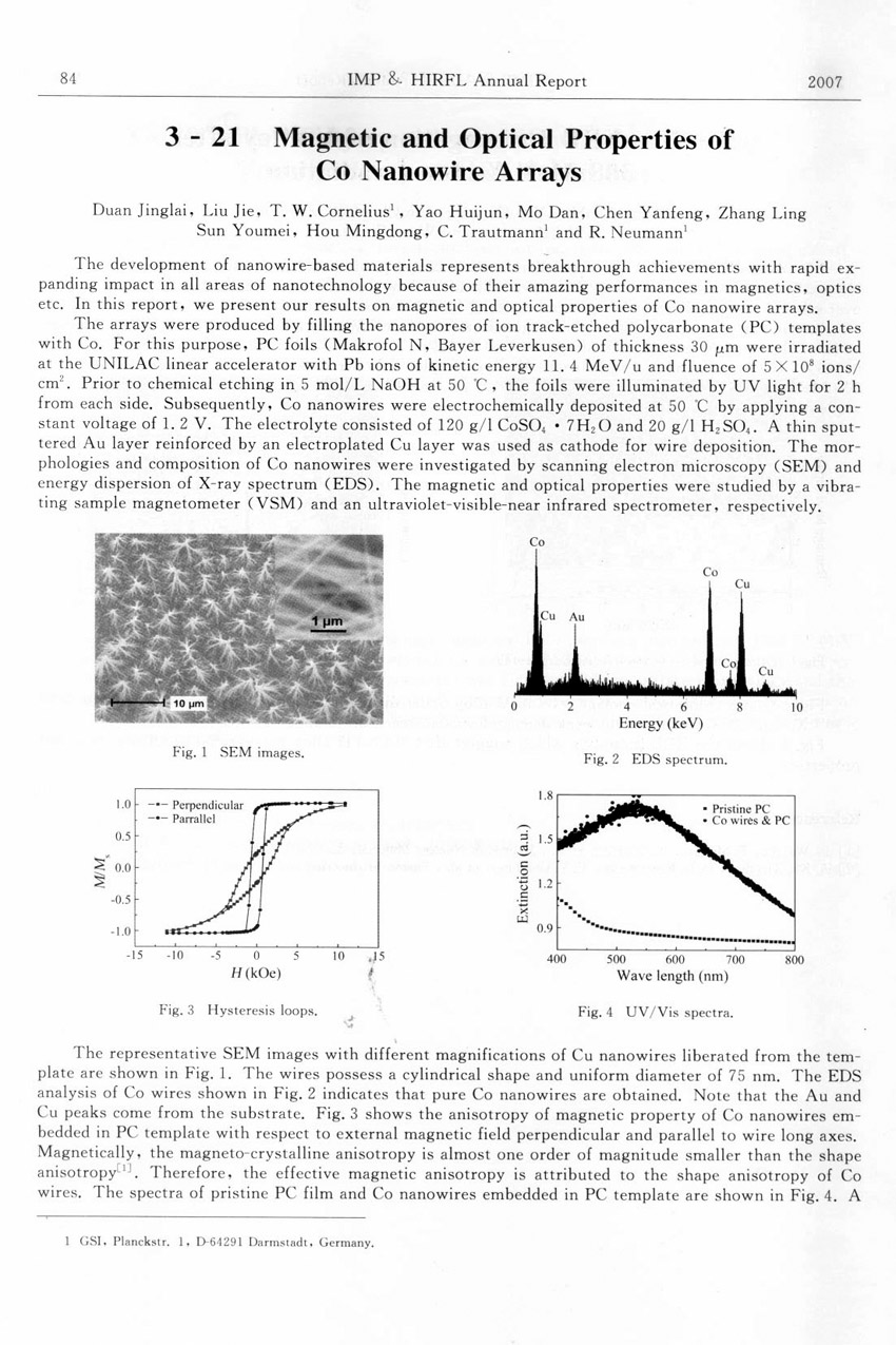 Magnetic and Optical Properties of Co Nanowire Arrays ... ... Duan Jinglai et al.(84)