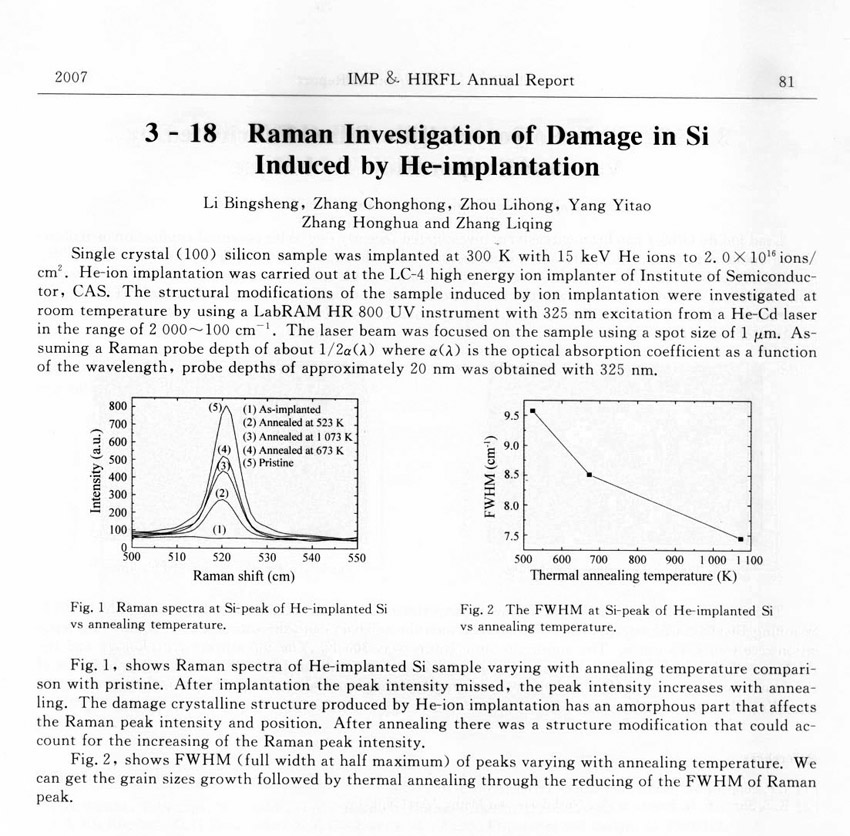 Raman Investigation of Damage in Si Induced by He-implantation ... ... Li Bingsheng et al.(81)