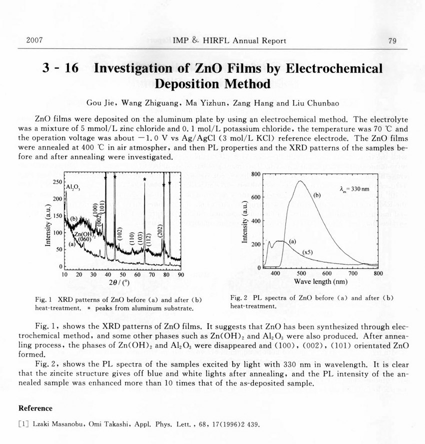 Investigation of ZnO Films by Electrochemical Deposition Method ... ... Gou Jie et al.(79)