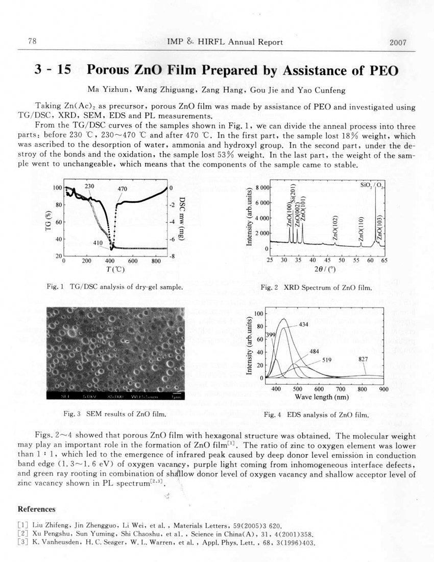 Porous ZnO Film Prepared by Assisatance of PEO... ... Ma Yizhun et al.(78)