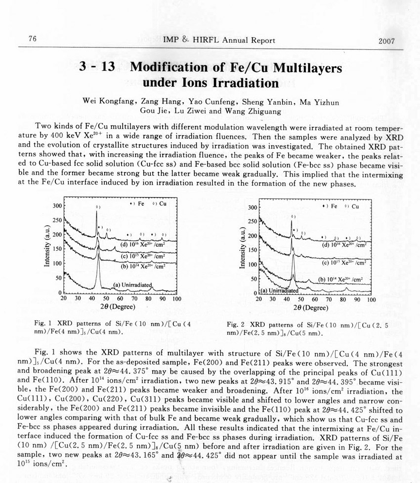 Modification of Fe/Cu Multilayers under Ions Irradiation ... ... Wei Kongfang et al.(76)