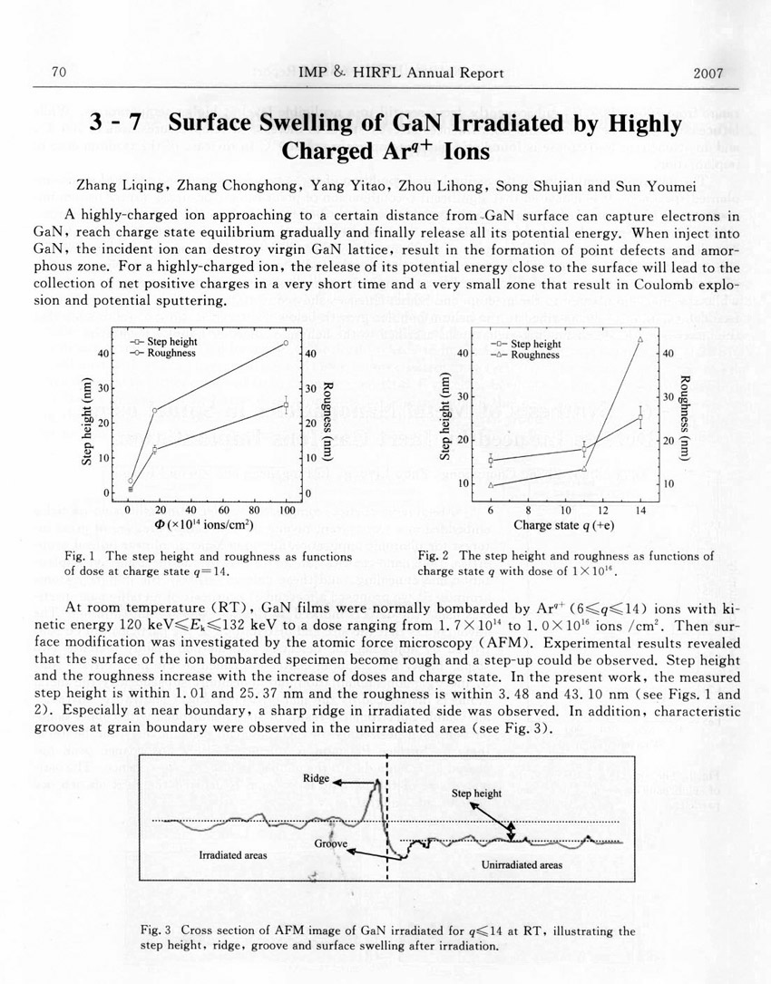 Surface Swelling of GaN Irradiated by Highly Charged Arq+ Ions ... ... Zhang Liqing et al.(70)