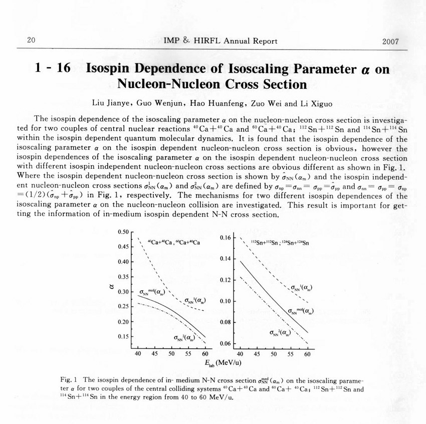 Isospin Dependence of Isoscaling Parameter α on Nucleon-Nucleon Cross Section ... ...Liu Jianye et al.(20)