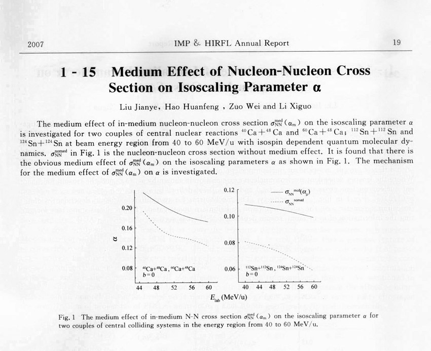 Medium Effect of Nucleon-Nucleon Cross Section on Isoscaling Parameter α... ... Liu Jianye et al.(19)