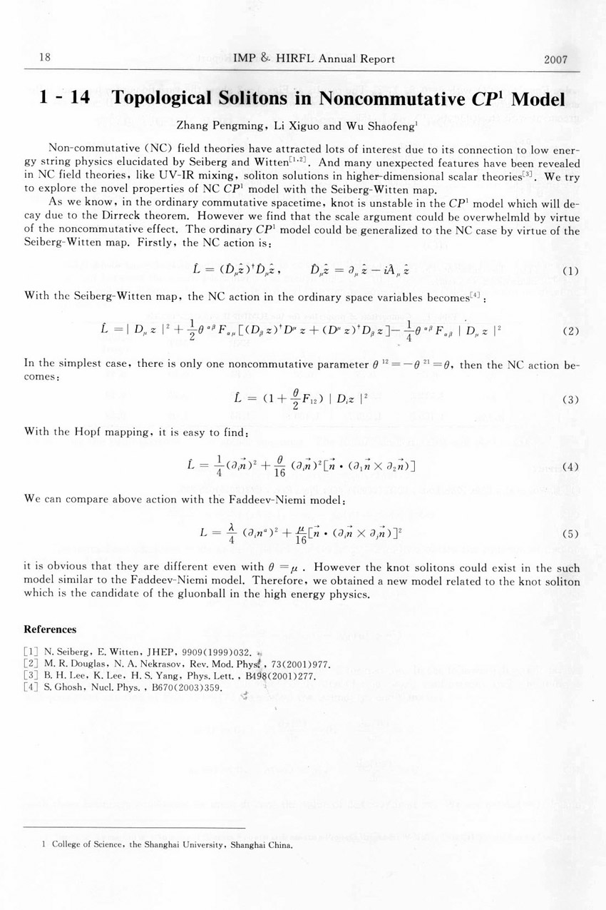 Topological Solitons in Noncommutative CP1 Model ... ... Zhang Pengming et al.(18)