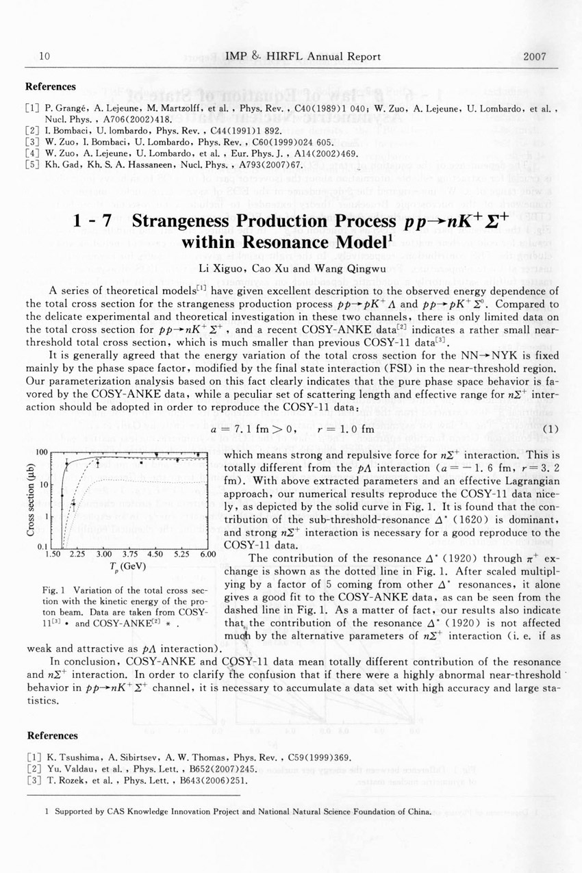 Strangeness Production Process ρρ→nK+Σ+ within Resonance Model... ...Li Xiguo et al.(10)