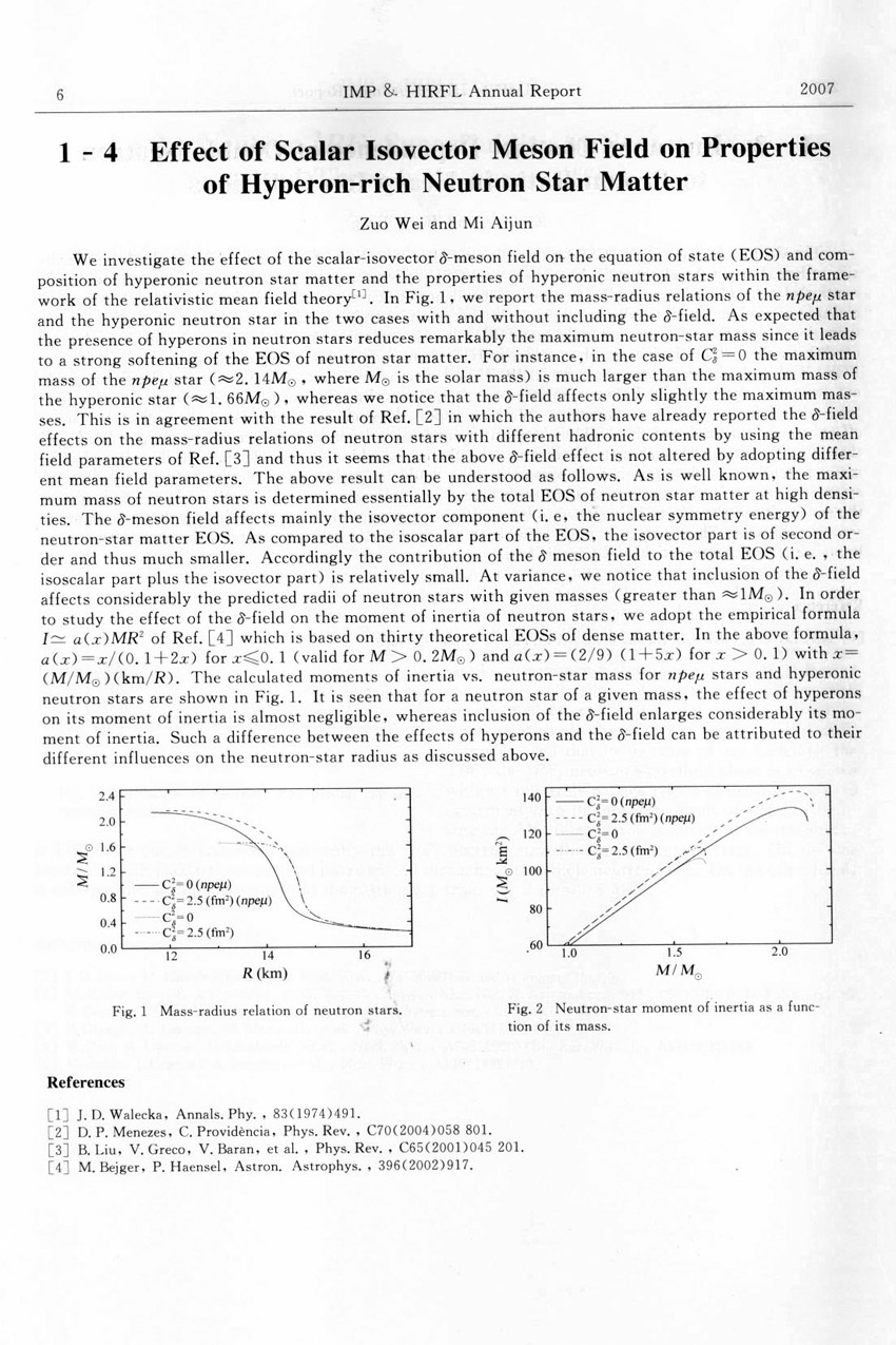 Effect of Scalar Isovector Meson Field on Properties of Hyperon-rich Neutron Star Matter... ...Zuo Wei et al.(6)