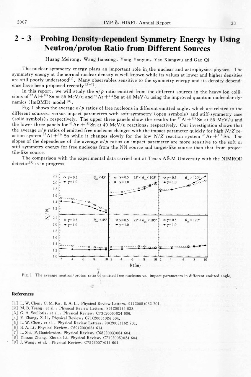 Probing Density-dependent Symmetry Energy by Using Neutron/proton Ration from Different Sources ...... Huang Meirong et al.(33)